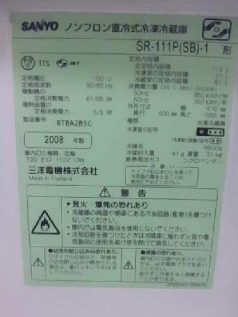 【¥10.500 状態良好シリーズ】 SANYO製 itsシリーズ冷蔵庫 ■ 型番:SR-111P(SB)-1- 川崎店