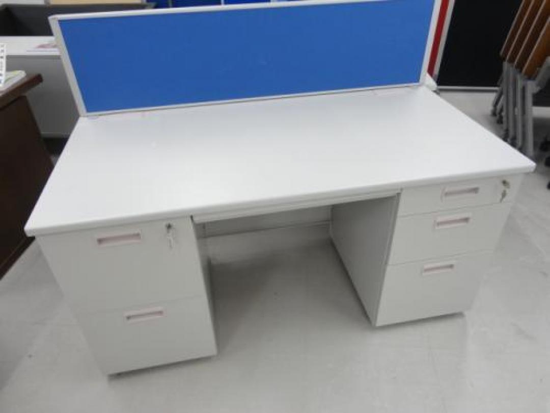 井上金庫製 両袖机 W1400タイプ デスクトップパネル付き- なんば日本橋店