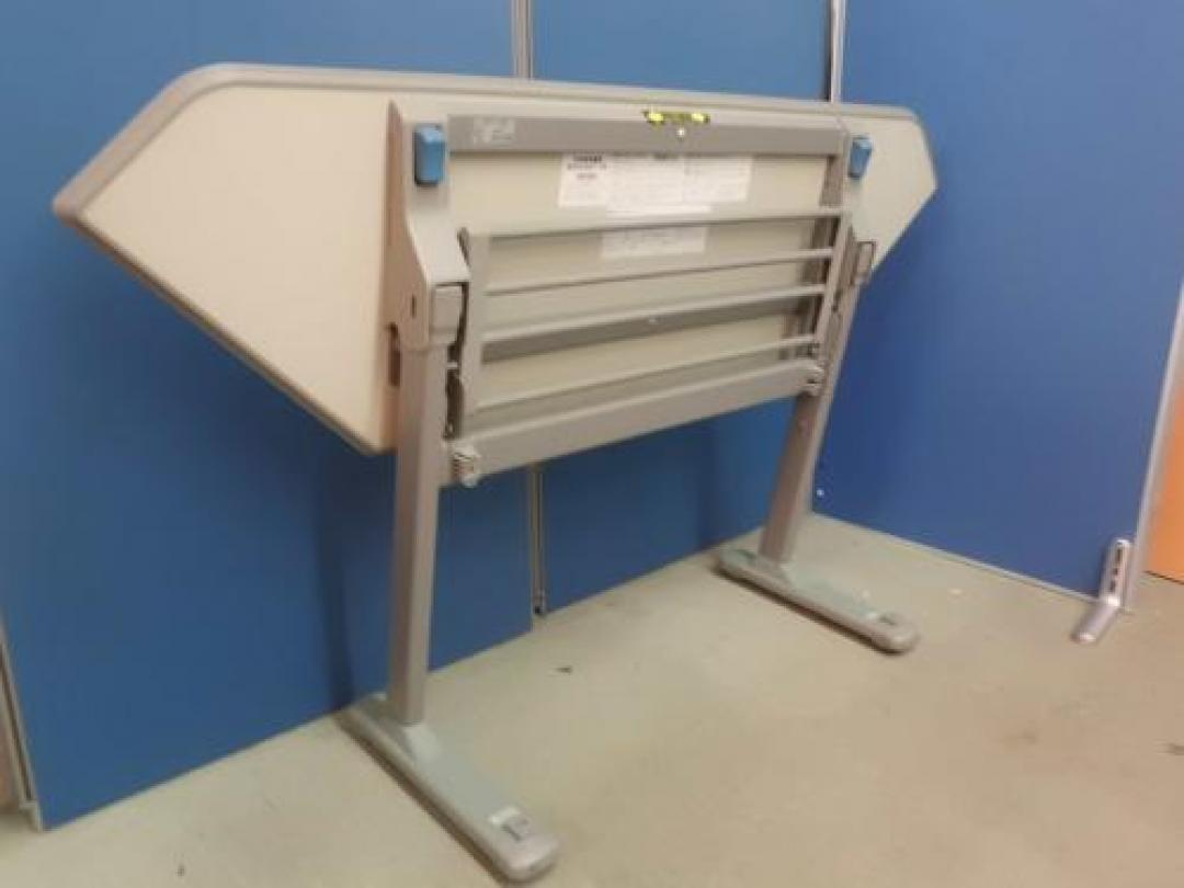 - 一部不具合あり天板歪み、アジャスター無し、キャスター使用不可ようなそのテーブルの本来の効用を果たすための機能以外の一部が使用不可な状態。(例、キャスターロッ ク機能使用不可、棚板無し等がある。)