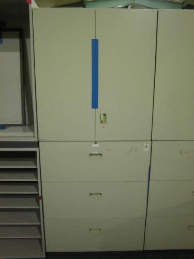 - 一部不具合ありそ引出の開閉不可、施錠不可、棚板無しといったの書庫の本来の効用を果たすための機能以外の一部が使用不可(例、扉、引出の開閉がしづらいなどがある。 )