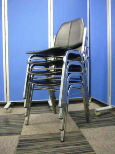 【ロット】プラス製革張りスタッキングチェア!!ちょっと型が古いためお努め価格!!【会議チェア】- 在庫数