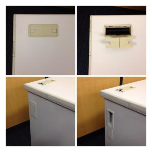 - パソコンなどの配線を、机上のダクトを通して机の下や隣の机に接続可能。だから、机の上はスッキリ。
