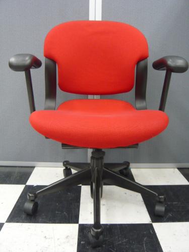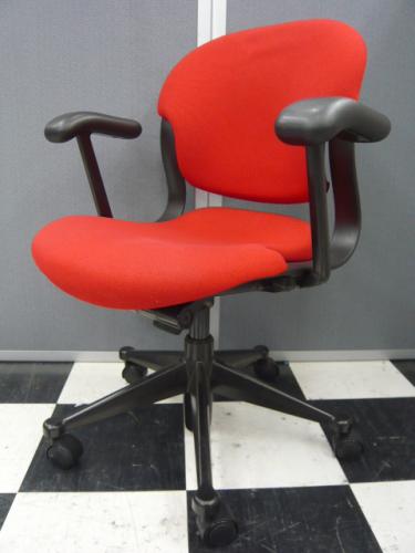 【おつとめ品】座面が外れるための特価商品【ハーマンミラー製】 ■エクアチェア 肘付き■ 真っ赤なレッドカラー 肘付き 固めの座面がちょうど良い。ゆりかごに揺られるような優しい座り心地が快適です。【OAチェア】- 埼玉本店