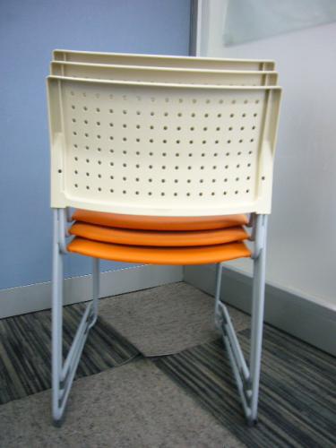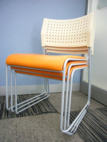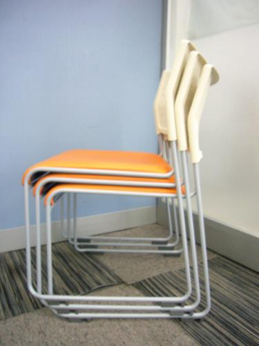 アイリスチトセ製 スタッキングチェア 座面オレンジカラー 収納効率に役立つ、ミーティングチェアです!!【会議チェア】- 在庫数