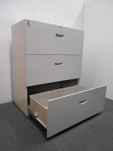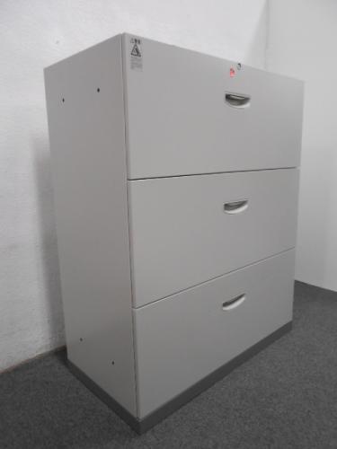 3段引出し書庫 | 幅900 奥行450 高さ1100 | ※3段目に傷有り(写真参照) | ニューグレー- 在庫数