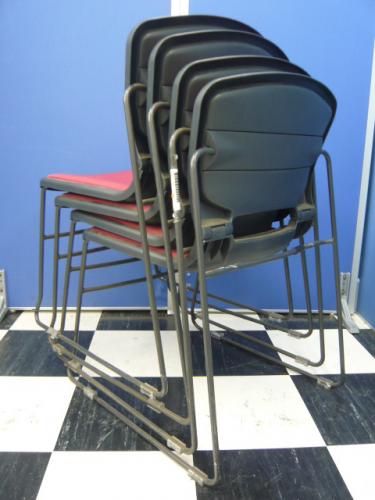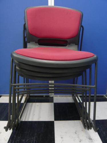 ■スタッキングチェア4脚セット■ ローズピンク色 【内田洋行製】 ※使用後は重ねて収納できます【会議チェア】- 埼玉本店