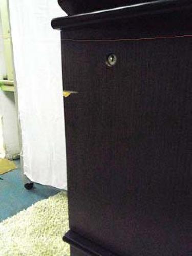 - かなり強い濃い黄ばみ・変色が商品全体にある。(例、天板、正面、背部、サイド部分にある。)