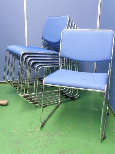 【14脚入荷!】スタッキングチェア ブルー ミーティングチェア シンプルデザイン【会議チェア】- 品川・三田店