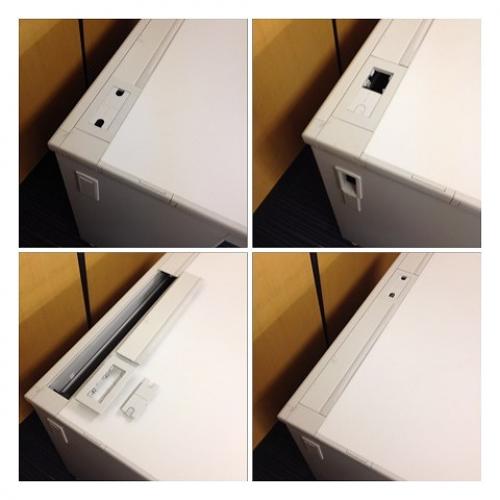 - パソコンなどの配線を、机上のダクトを通して机の下や隣の机に接続可能。だから、机の上はスッキリ。