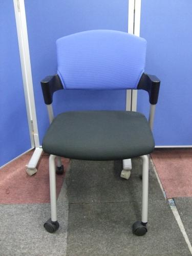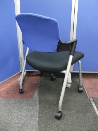 【シンプルスマートなスタッキングチェア!分厚いクッションで長時間でも快適な座り心地!】■コクヨ(KOKUYO)製 プロッティ (Protty) 肘付 ミーテイングチェア スタッキングチェア ■固定肘 ■ブルー×ブラック ■背面ヌードタイプ