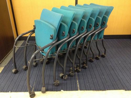 【事務椅子】【布地に汚れ有り】ミーティングチェア<br>【ネスティング】【平行に収納可能】【キャスター付き】【会議チェア】- 日本橋店