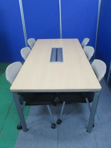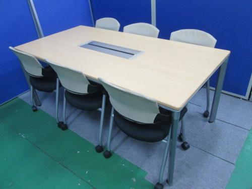 【セット商品】オカムラ製ミーティングテーブル【DL-6】とコクヨ製 【プロッティーシリーズ】スタッキングチェア×6脚のセット商品。- 池袋店