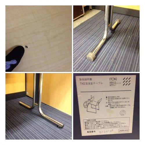 - 壊れている天板歪み、アジャスター無し、キャスター使用不可のようにそのテーブルの本来の効用を果たすための機能に不具合がある。