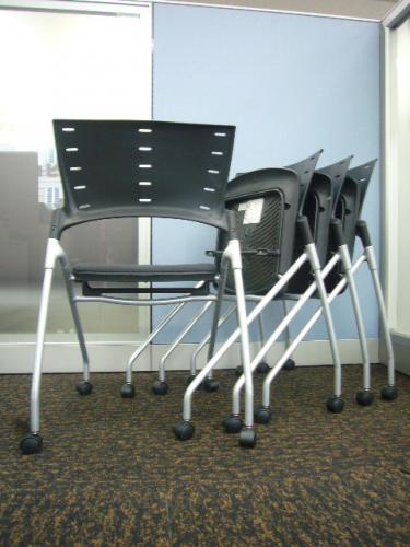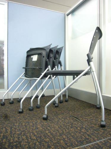 キャスター付きかつネスティング収納可能なため、女性でも収納時力仕事が必要なく省スペースの収納ができます