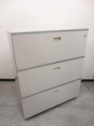 【4台限定在庫入替セール品】イトーキ製の定番書庫!人気の引き出し(ラテラル)タイプになります! イトーキ シンライン ホワイトグレー 3段ラテラル 天板付き