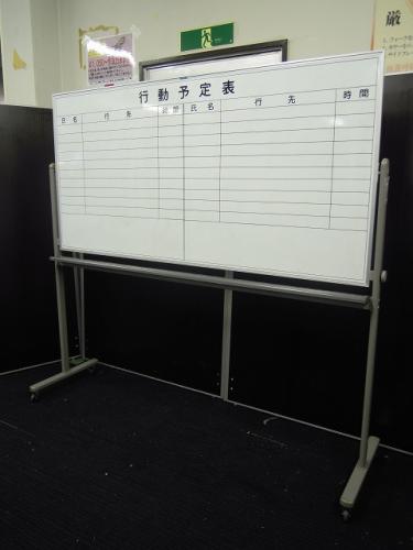 【1台入荷!】脚付き両面ホワイトボード 片面無地、片面行動予定表■盤面サイズ 幅1800mm*高さ900mm ■中古希少在庫!- 川崎店