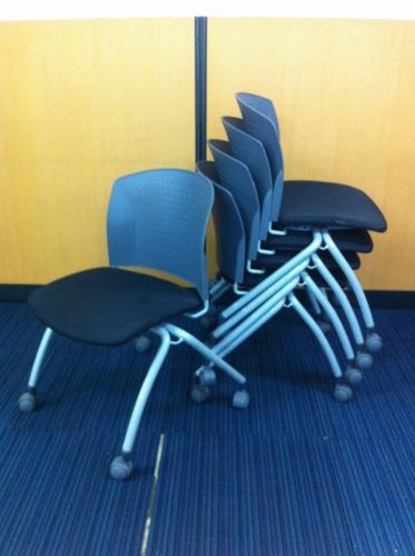 【事務椅子】【ミーティングチェア】<br>【スタッキングチェア】【重ねて収納可能】【キャスター付き】【色:グレー】【会議チェア】- 日本橋店