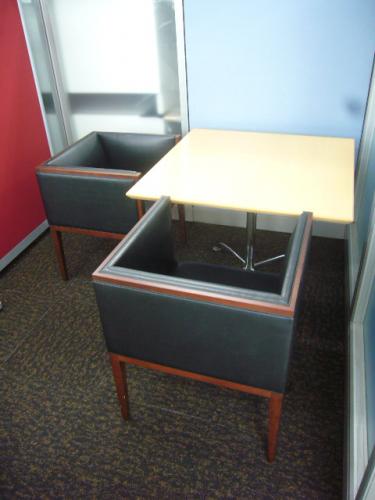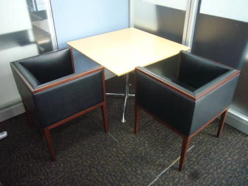 【リフレッシュコーナーに是非お勧め!】【テーブル&チェア 3点セット】テーブル 幅900mm & 本革製 アームチェア 2脚 【セット商品】【状態良好】- 在庫数