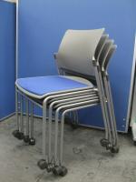 【4脚セット】オカムラ製のスタックチェア【ブルー・キャスター付】【会議チェア】- 在庫数