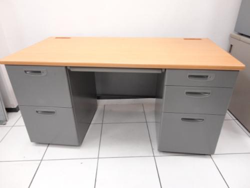 ナイキ製 両袖机 天板ナチュラルタイプ 幅1400タイプ ※真ん中の引き出しに難あり- なんば日本橋店