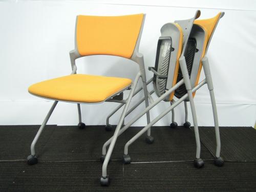 【3脚入荷】イトーキ製 ネスティングチェア イエロー ミーティングチェア 【中古オフィスチェア】【会議チェア】- 川崎店