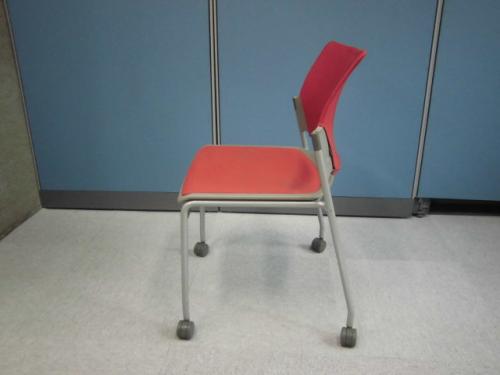 オカムラ Okamura | スタッキングチェア | キャスター付 | レッド | 数量11脚 | 【会議チェア】- 横浜本店