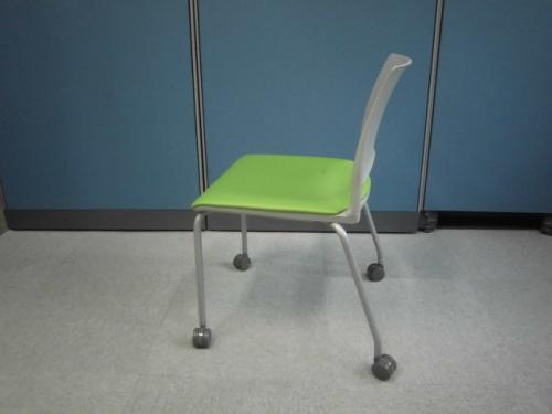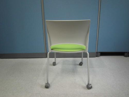 【鮮やかなカラー配色(ホワイト/グリーン)】キャスター付スタッキングチェア【会議チェア】- 横浜本店