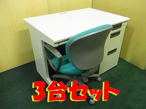 【セット商品】■プラス製 片袖机 W1000 & コクヨ製 肘付きチェア ■〜人気のシリーズの組み合わせは今だけ☆〜【3台セット】- 在庫数
