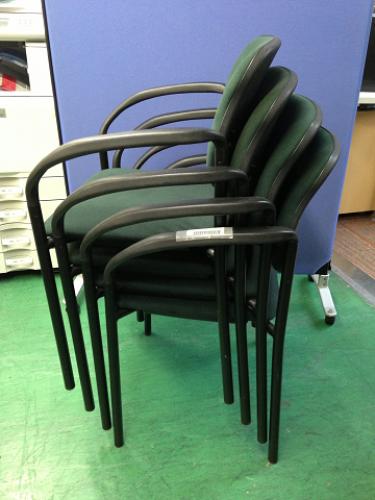 【スタッキングチェア】会議室用のチェア■落ち着いたグリーンでオフィスに高級感をだしてみませんか?■4脚揃う【会議チェア】- 品川・三田店