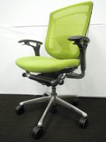 【クリーニング業社洗浄済み】【1脚入荷!状態良好!】岡村製作所 Contessa コンテッサチェア スタンダードタイプ 座面クッション ポリッシュフレーム エルゴノミックメッシュチェア CM32AB ライムグリーン 希少カラー【中古肘付きオフィスチェア】【高級チェア】【OAチェア】サーキュラーバリューCO2削減量の算出について
