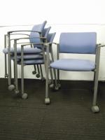【セット商品☆単体で買うより1260円オトク!】コクヨ製 肘付きスタッキングチェア キャスター付き ブルー【中古事務用イス】【会議チェア】- 川崎店