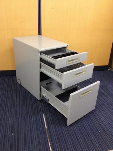 【キャビネット】3段ワゴン<br>【内田洋行製】【三段タイプのキャビネット】【色:ニューグレー】- 日本橋店