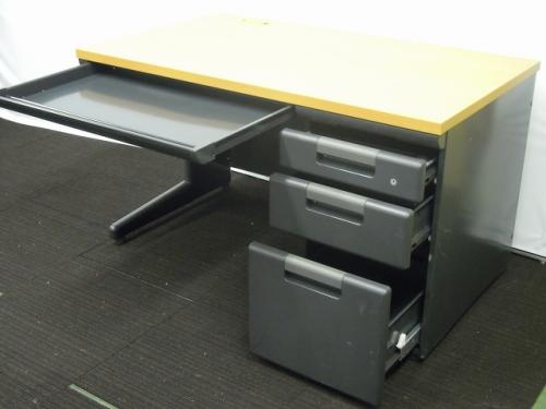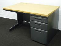 【1台限定特価!】プラス製 | 片袖デスク | 幅1200mm | ナチュラル天板×ブラック |【中古事務机】- 川崎店