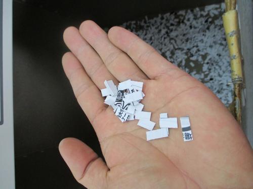 縦切り&横切りによる小さな細断面積で、機密保持を徹底。