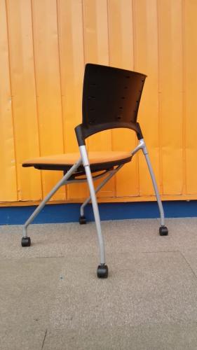 【イトーキ製】マノス ネスティングチェア オレンジ キャスター付き【会議チェア】- 仙台店