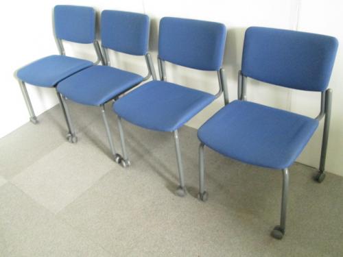 スタッキングチェア キャスター付【4脚セット】 ブルー オフィスチェア 会議椅子【セット商品】【会議チェア】- 名古屋本店