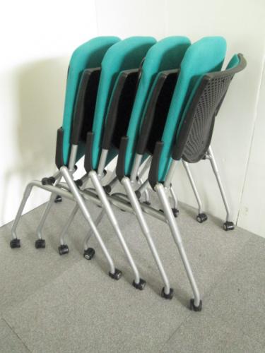 オカムラ(okamura)ネスティングチェア【4脚セット】プロスタック グリーン オフィスチェア 事務椅子【会議チェア】- 名古屋本店