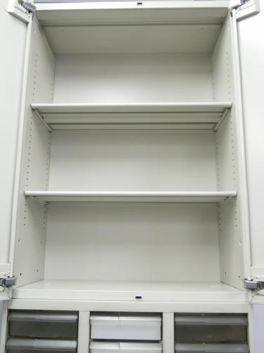 - 一部不具合ありそ引出の開閉不可、施錠不可、棚板無しといったの書庫の本来の効用を果たすための機能以外の一部が使用不可(例、扉、引出の開閉がしづらいなどがある。 )