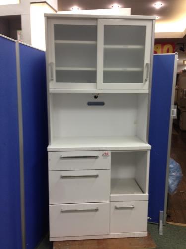 【オフィスキッチン】大容量キッチンキャビネット 綺麗なホワイト色です- 京都東寺店