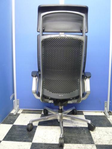【高級チェア】【限定1台】オカムラ製 デューク(Duke)型番:CZ47ZX エキストラハイバック ブラック本革張り ポリッシュフレーム ※左肘に約5mmほころび有【OAチェア】- 埼玉本店