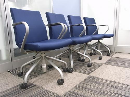 【4脚セット】会議用チェアでも座り心地を求める方に! 内田洋行 ミーティングチェア 上下昇降機能 キャスター付【セット商品】【会議チェア】- 在庫数