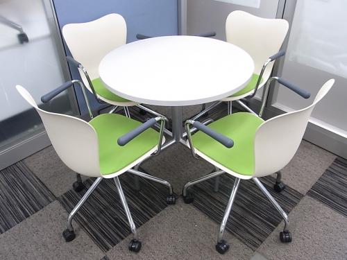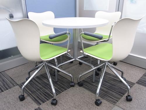 【セット】Aico製丸テーブル+LION製ミーティングチェア【オススメ】お洒落なテーブルチェアセット■リラックススペースにもってこい!- 在庫数