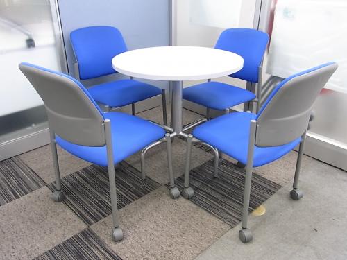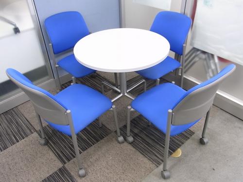 【セット】【状態良好】Aico製丸テーブル+イトーキ製ミーティングチェア■ホワイト天板と鮮やかなブルーが美しい■- 在庫数