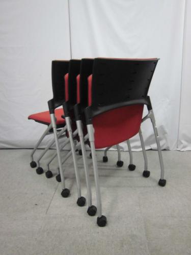 【グッドデザイン賞受賞】イトーキ製|マノスチェア|レッド|ネスティング|4脚セット|【セット商品】【会議チェア】- 横浜本店