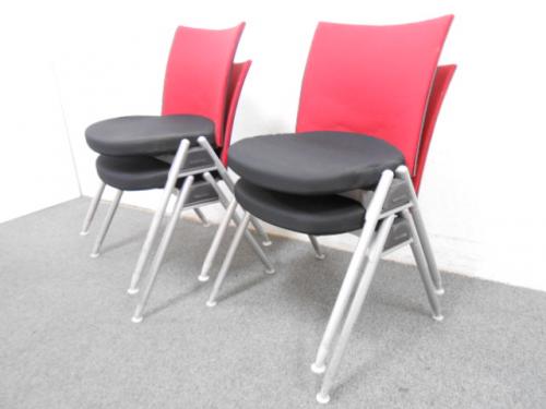 ■スタッキングチェア4脚セット ■レッド/ブラック ■ウチダ(UCHIDA) ■【セット商品】【会議チェア】- 在庫数