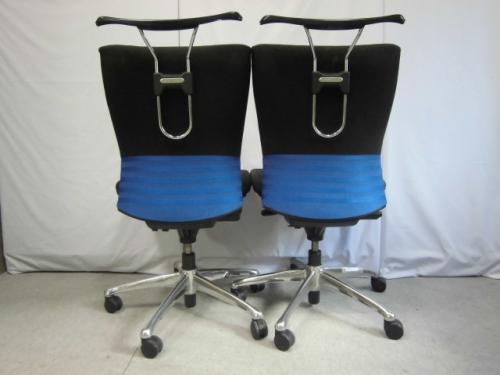 オカムラ|フィーゴチェア|シームレスタイプ|2脚セット|肘無|ブラック×ブルー|ハンガー付|【セット商品】 【OAチェア】- 横浜本店