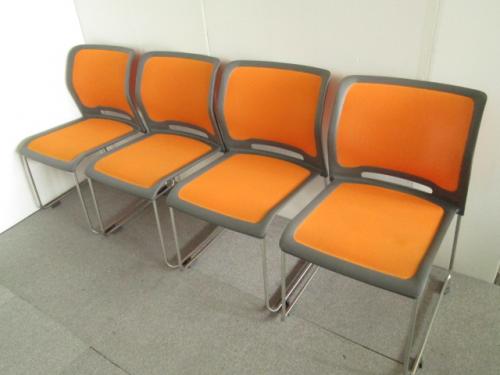 【4脚セット】コクヨ(kokuyo)スタッキングチェア ウィティWitty オレンジ メッシュチェア 会議椅子【セット商品】【会議チェア】- 名古屋本店