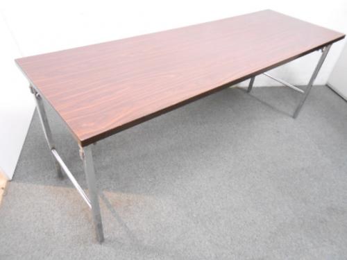 ■折りたたみテーブル ■ブラウン(木目柄)■角にカケ有り■W1800×D600×H700※カケ有りのためお安くなっております。- 在庫数