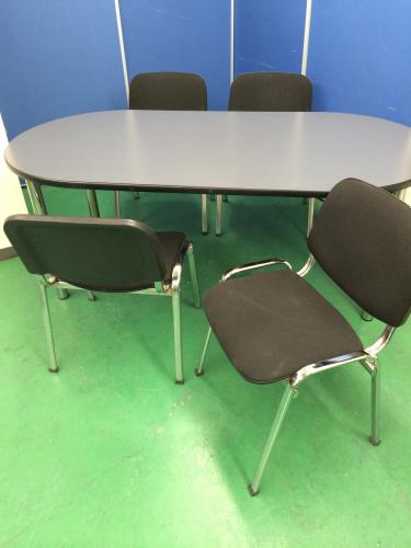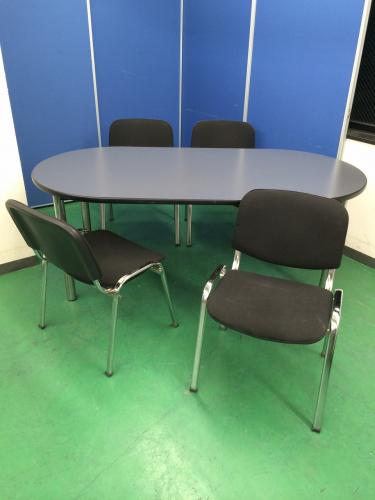 【セット商品】【会議室用】【テーブル/イス】W1800ブラックのミーティングテーブル×スタッキングチェア4脚□4名〜6名の会議に最適□テーブルとチェアがブラックなのでかっこいいオフィスを実現!- 品川・三田店