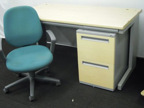 【セット商品】内田洋行製 幅1400mm 平デスク + 内田洋行製 2段ワゴン + 内田洋行製 ジャストチェア- 川崎店